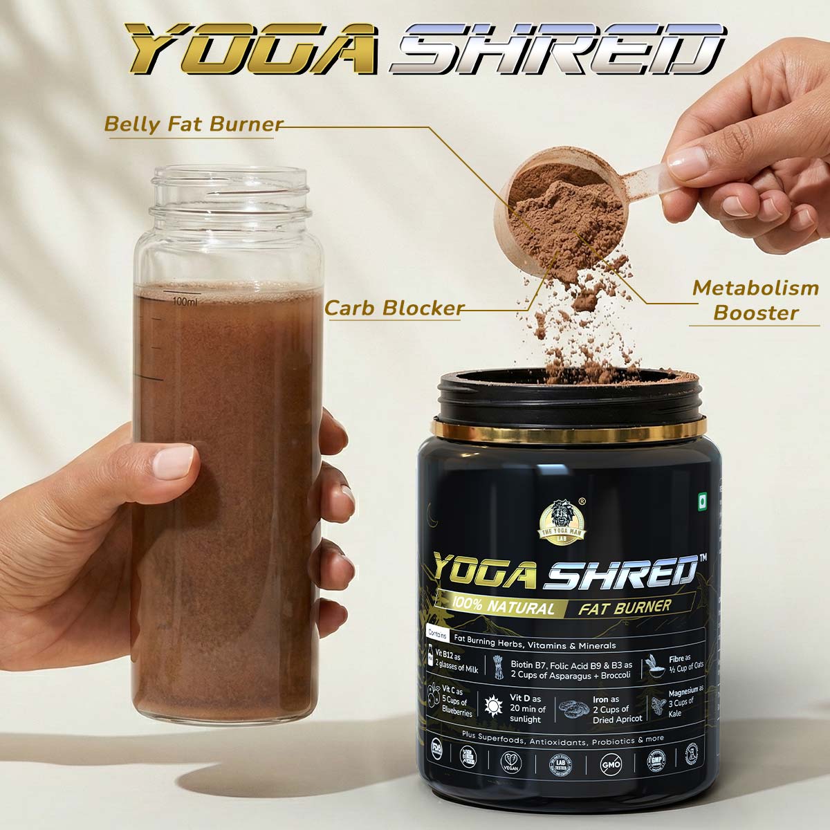 योगा श्रेड® आपको अपने वसा हानि लक्ष्य तक पहुंचने में मदद कर सकता है, क्योंकि यह थर्मोजेनिक वसा बर्नर है और वसा को पिघलाने के लिए आपके शरीर पर कई तरीकों से काम करता है।
