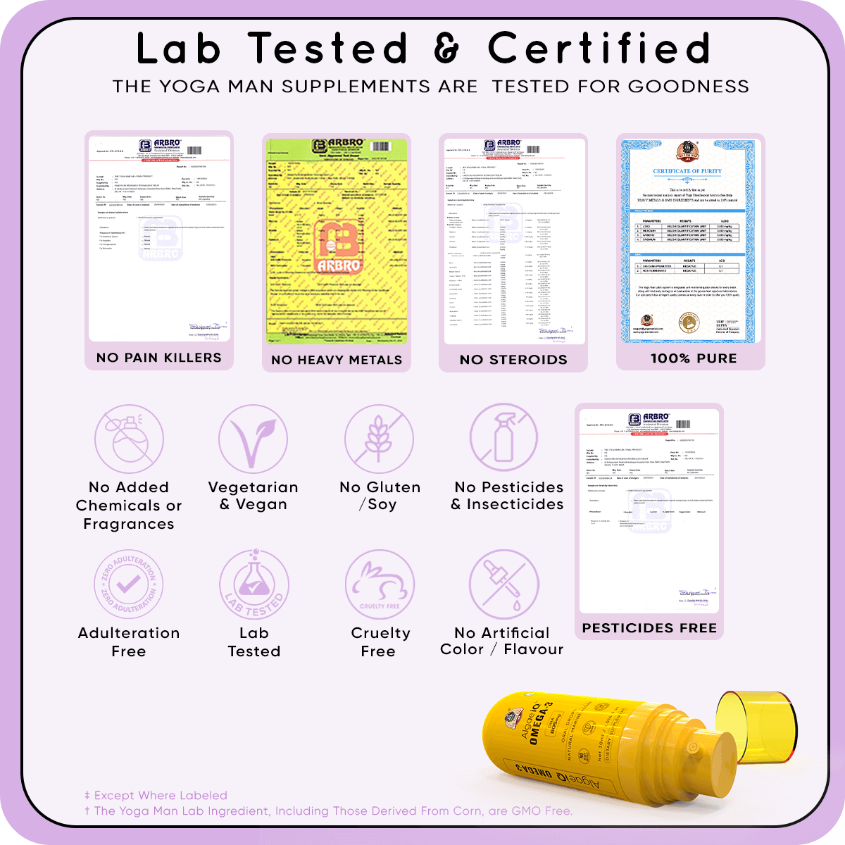 The Yoga Man Lab adhere to regulatory limits set by the FDA and WHO. Heavy metal contamination can occur at farms or during manufacturing, which can lead to severe health issues such as respiratory problems, neurological disorders, kidney damage, and cancer.